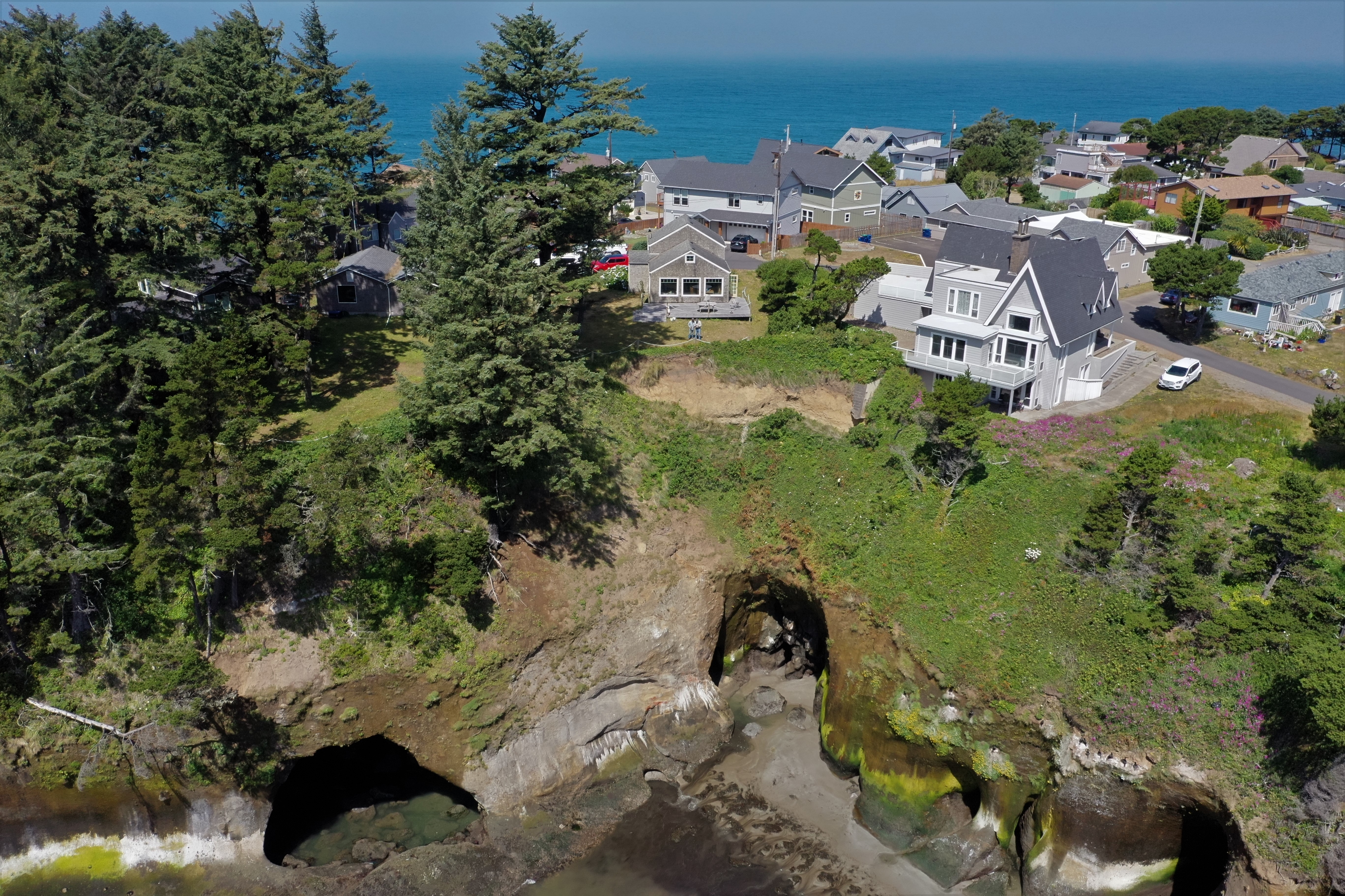 Requirements: Provide a set of pictures that could be used to perform a Geotechnical Engineering Survey as required by law for all building project located on the Oregon coast. The subject project is located on a cliff with no safe access to inspect the under-cut bank and sea caves underneath the property. The engineering survey is needed to identify any hazards or concerns with the soil and rock mechanics of the subject property, and whether it can support the proposed addition relative to the lot size, shape, building and cliff edge; all of which serve as boundaries to our proposed addition.